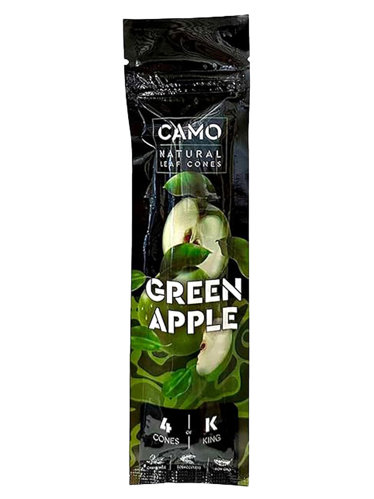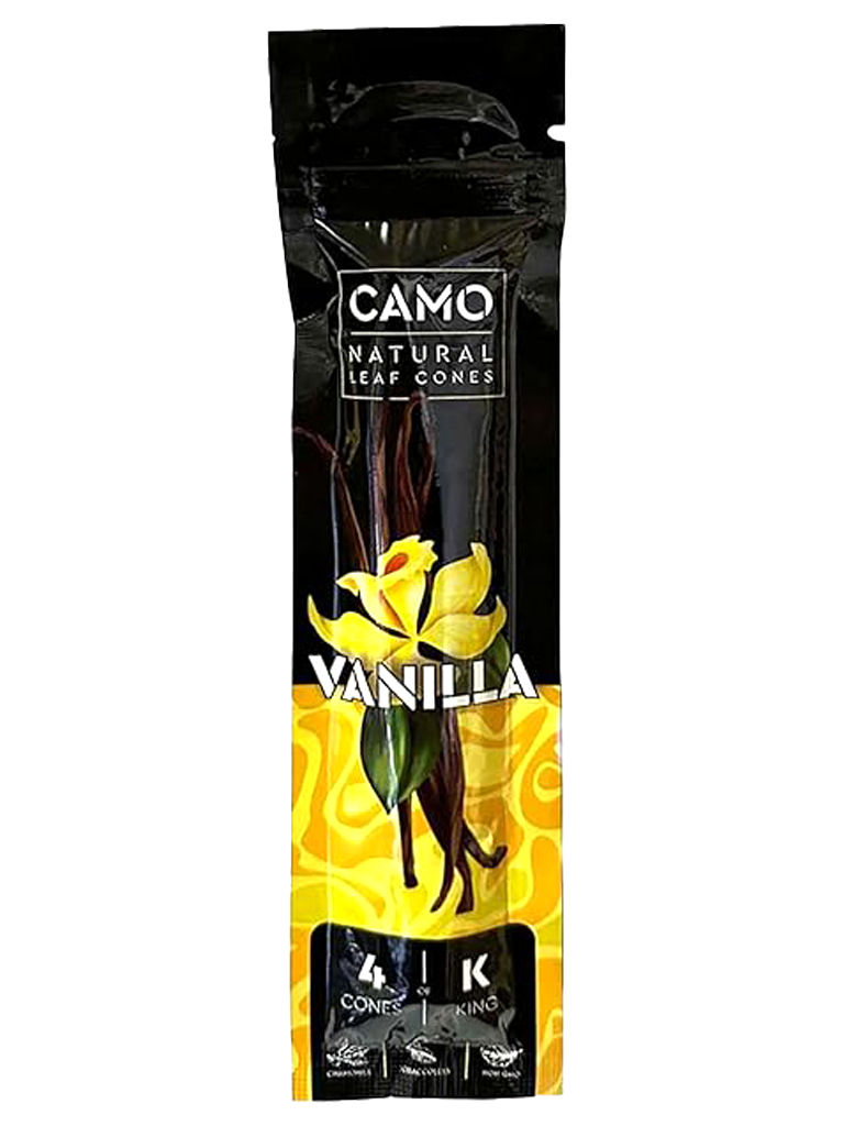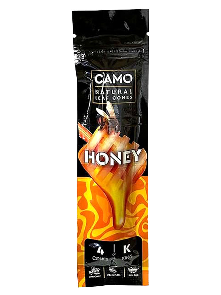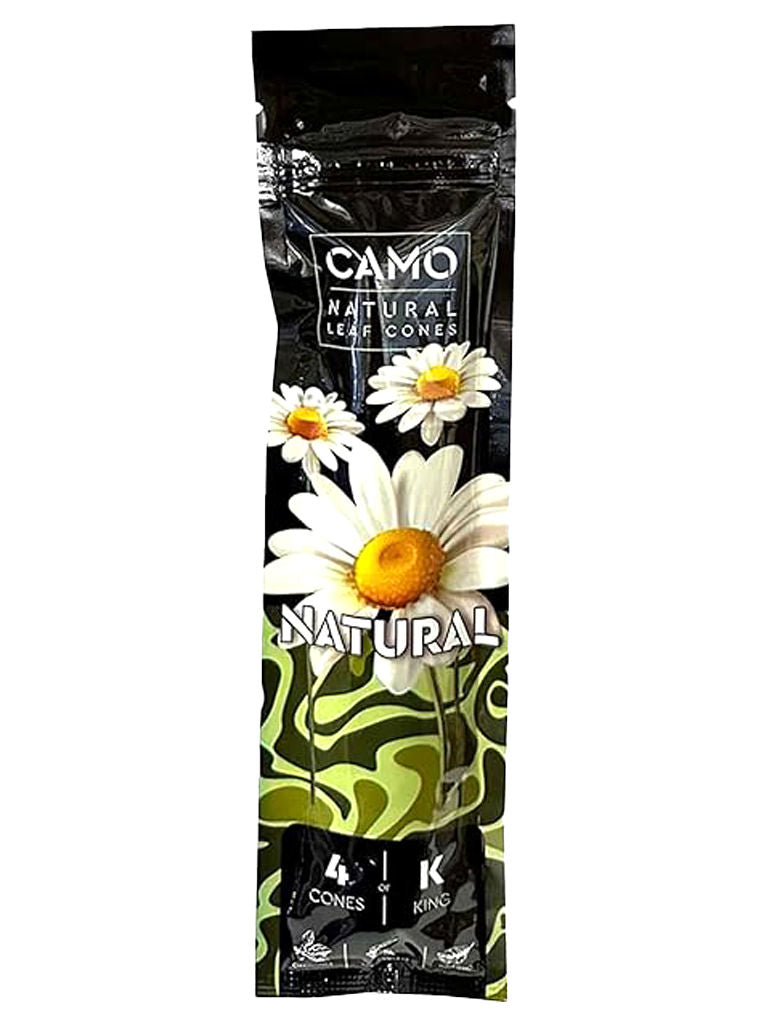 Camo Natural Leaf Cones are crafted in Brazil with premium quality material. Nicotine & Tobacco-Free. 4 natural leaf cones per pack in resealable foil packaging.
